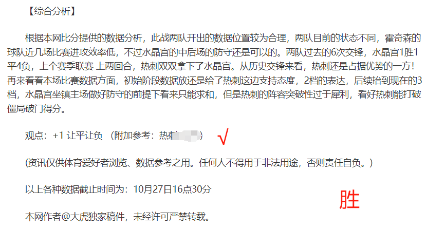 (温馨提示:观点回顾为已完场赛事的统计,并不能代表未来的观点预测结果走势,观点仅为其个人意见,与平.台无关。资讯仅供体育爱好者浏览,并不构成购.彩建议,任何人不得用于非法用途,请广大用户理性消费。)