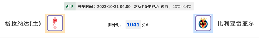 周一 赛事003:格拉纳达vs比利亚雷亚尔