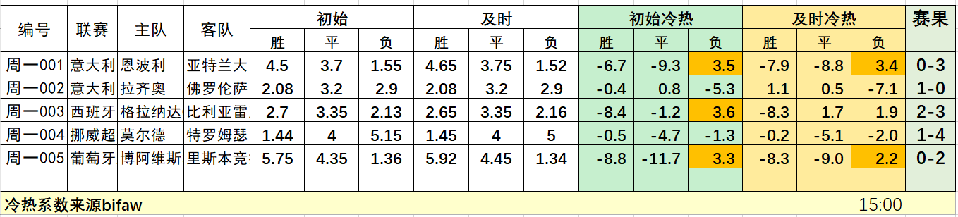昨日冷热系数表现一般,取胜较热的亚特兰大和里斯本皆战胜对手,未能准确提示。