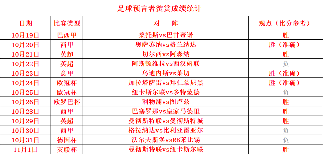 (温馨提示:观点回顾为已完场赛事的统计,并不能代表未来的观点预测结果走势,观点仅为其个人意见,与平.台无关。资讯仅供体育爱好者浏览,并不构成购.彩建议,任何人不得用于非法用途,请广大用户理性消费。)