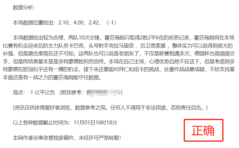 (温馨提示:观点回顾为已完场赛事的统计,并不能代表未来的观点预测结果走势,观点仅为其个人意见,与平.台无关。资讯仅供体育爱好者浏览,并不构成购.彩建议,任何人不得用于非法用途,请广大用户理性消费。)