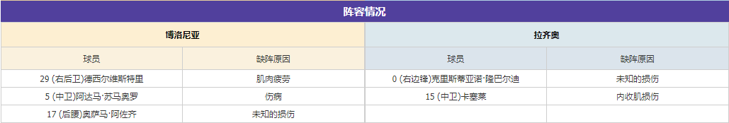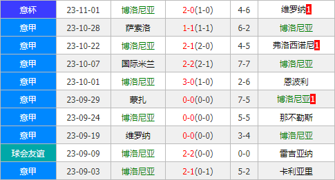 毕竟结合到对赛双方在近年来的近10次交锋记录可见呀,博洛尼亚在面对拉齐奥的时候其实只取得2胜3平5负的劣势表现,其中在过去的4次碰面当中球队更是未尝胜绩(其中3场惨遭对手零封,共计只打入1球),可以看出菠萝在面对蓝鹰的时候确实不占优势。