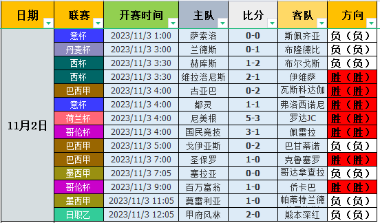 有只关注组合的老铁可以只关注欧洲数据和力度数据的数据即可,因为在以往的文章中,欧洲数据和力度数据的方向方向跑出的情况是非常高的,而鉴于数值的问题,这就需要各位老铁自己选择了!另外自2023年11月1日起,文章数据将会发生改变:①为了争取更多的胜利,今后整数数据将尽量不会被写入方向栏目!②每篇文章数量维持3~5场左右!③更多数据将会持续开发!