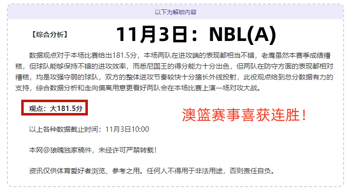 解锁内容包括:综合大数据分析+分解赛事走向+比赛建议+作者观点数据