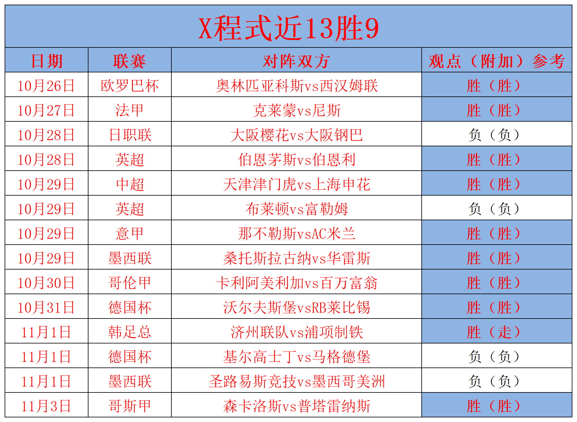 2、近期战绩回顾:昨天分享的哥斯甲顺利拿下,近期整体成绩13胜9(不含走的),保持稳定。