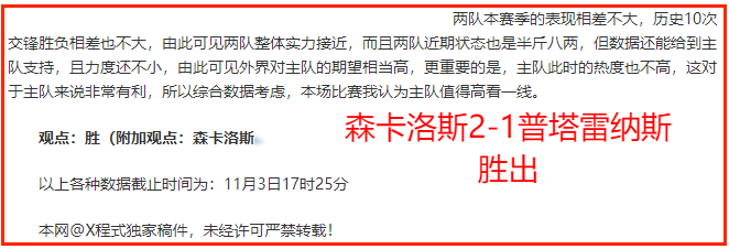 大家好!我是X程式,涉及足球领域10余载,对于各种联赛的性质具有丰富的分析经验,有着近5年的各类主流联赛的欧亚趋势数据库,擅长基本面的捕捉,对于各界走势变化的对比有独特的见解。