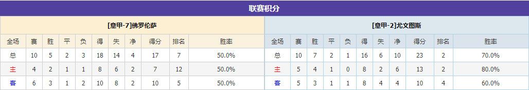 北京时间11月6日的凌晨03点45分,意甲联赛的第11轮赛事的比赛即将继续火热开打!——传统老牌豪门尤文图斯将会作客去到法兰基球场对阵“紫百合”佛罗伦萨!本赛季主场表现不俗的紫百合能否延续状态再次捍卫主场拿到积分?还是赛季至今后防线表现极其出色的老妇人能够一鼓作气再添胜仗?下面将由Yoyo姐将为大家带来详细的赛事分析: