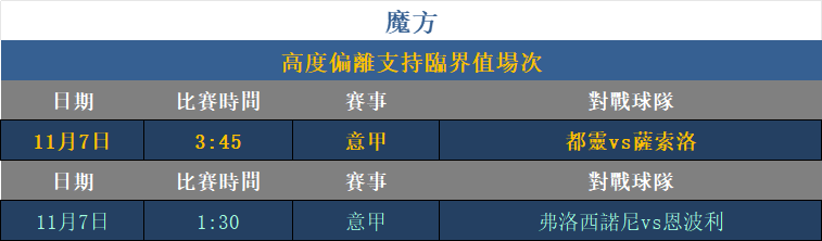 利用「魔方關系」進行支持趨勢預測分析,超越臨界數值之上可視為低機率方向,此方式對比賽方向分析有顯著幫助效果。
