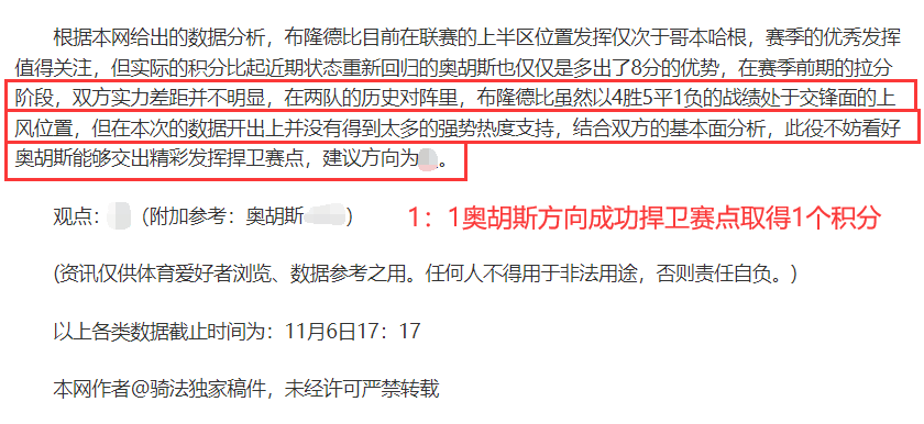 (温馨提示:观点回顾为已完场赛事的统计,并不能代表未来的观点预测结果走势,观点仅为其个人意见,与平.台无关。资讯仅供体育爱好者浏览,并不构成购.彩建议,任何人不得用于非法用途,请广大用户理性消费。)