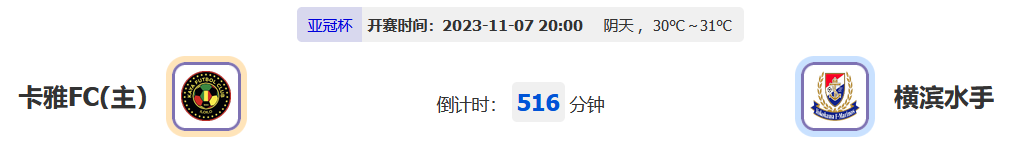 北京时间11月7日20:00,亚冠杯2023-2024分组赛,卡雅FCvs横滨水手,目前G组前3的三支球队都是同积6分处于白热化的竞争过程,已经彻底沦为送分童子的卡雅FC本次回归主场之下会否对横滨水手造成得分阻力?让我们一起关注!