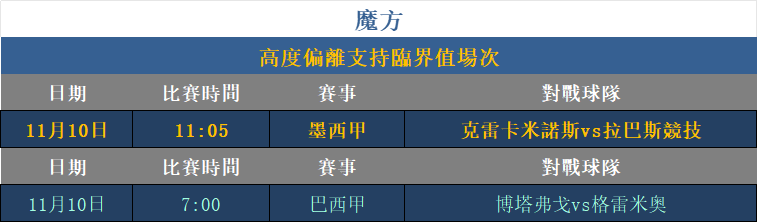 利用「魔方關系」進行支持趨勢預測分析,超越臨界數值之上可視為低機率方向,此方式對比賽方向分析有顯著幫助效果。