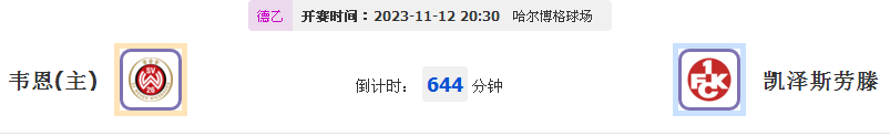 北京时间2023年11月12日20:30,2023-2024 德国乙组联赛,韦恩vs凯泽斯劳滕,此役是德乙新赛季第13轮的较量。主队韦恩上轮联赛客场3-1大胜杜塞尔多夫,联赛近三轮连胜,此役坐镇主场哈尔博格球场迎战凯泽斯劳滕,两队将如何对峙?下面由本作者为大家做详细阐述。