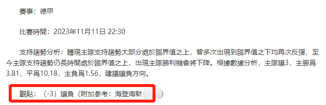 【解鎖內容為以上賽事支持趨勢預測圖展示,以及根據分析預測圖進行相對低機率方向觀點判斷。解鎖內容僅代表個人知識領域觀點,與本網站無關】
