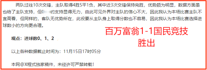 大家好!我是X程式,涉及足球领域10余载,对于各种联赛的性质具有丰富的分析经验,有着近5年的各类主流联赛的欧亚趋势数据库,擅长基本面的捕捉,对于各界走势变化的对比有独特的见解。