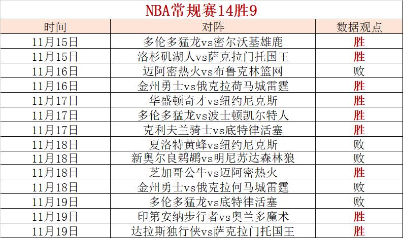 NBA模型14胜9,今晚继续NBA专题,希望大家喜欢。
