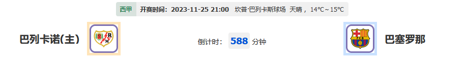北京时间11月25日21:00,2023-2024 西班牙甲组联赛,巴列卡诺vs巴塞罗那,巴列卡诺近4次面对巴塞罗那,取得3胜1平的成绩,今天主场迎战巴塞罗那会继续延续这一历史吗?