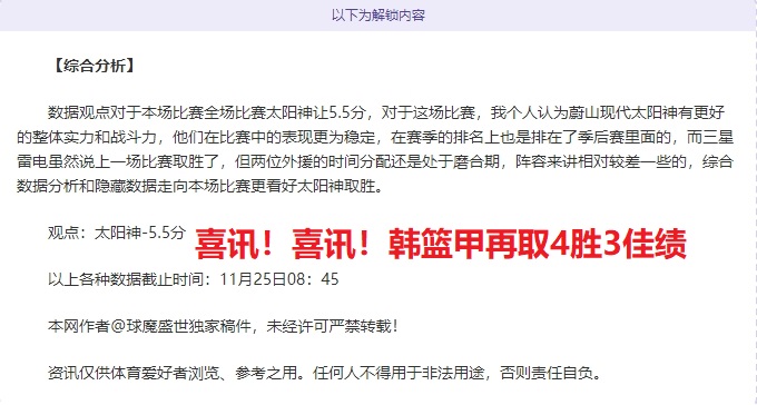 解锁内容包括:综合大数据分析+比赛建议+作者观点