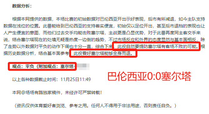 (温馨提示:观点回顾为已完场赛事的统计,并不能代表未来的观点预测结果走势,观点仅为其个人意见,与平.台无关。资讯仅供体育爱好者浏览,并不构成购.彩建议,任何人不得用于非法用途,请广大用户理性消费。)