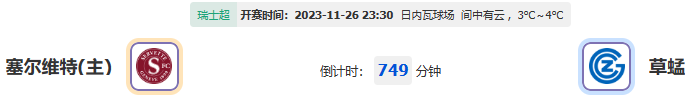 北京时间11月26日23点30分,23-24瑞士超联赛第15轮的一场比赛,草蜢将前往日内瓦球场与塞尔维特展开较量。塞尔维特近期在联赛中豪取6连胜,本轮面对客场状态起伏较大的草蜢,主队有望再下一城。