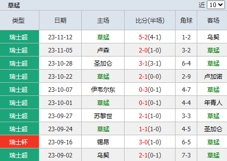 1、本赛季草蜢在瑞士超联赛中的发挥则有失稳定,其战斗力明显不足,14轮联赛战罢,他们只是以4胜2平8负积14分的成绩,排名积分榜第10位。