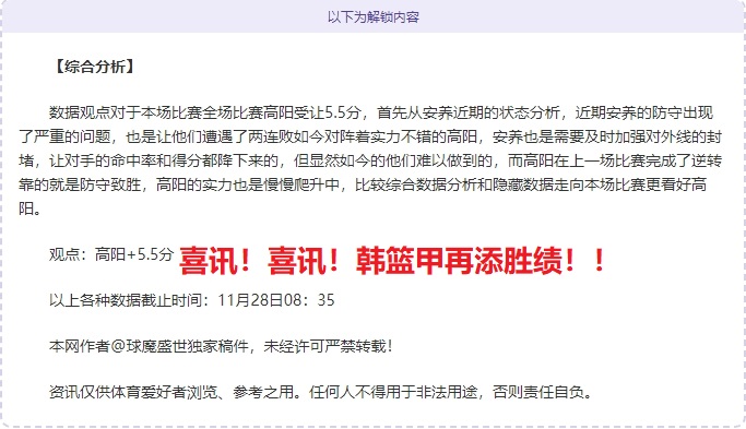 解锁内容包括:综合大数据分析+比赛建议+作者观点