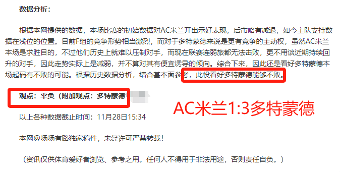 (温馨提示:观点回顾为已完场赛事的统计,并不能代表未来的观点预测结果走势,观点仅为其个人意见,与平.台无关。资讯仅供体育爱好者浏览,并不构成购.彩建议,任何人不得用于非法用途,请广大用户理性消费。)