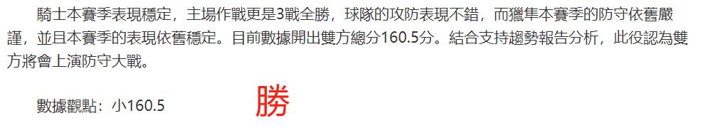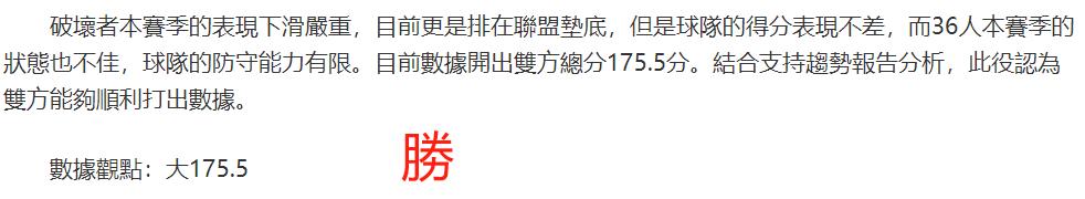 (溫馨提示:觀點回顧為已完場賽事的統計,並不能代表未來的觀點預測結果走勢,觀點僅為其個人意見,與平.臺無關。資訊僅供體育愛好者瀏覽,並不構成購.彩建議,任何人不得用於非法用途,請廣大用戶理性消費。)