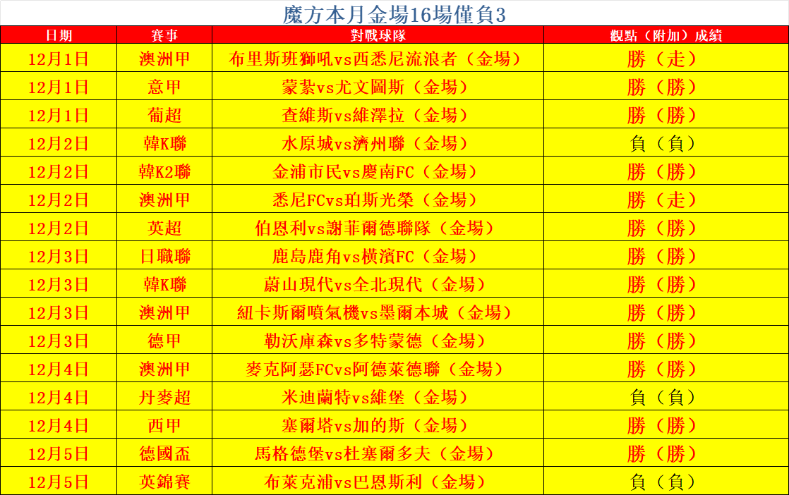 魔方昨天4勝3,其中德國盃專場清版全勝!連續多天打出正值!本月金場打出16場負3場的穩定成績!接下來魔方將會不斷努力務求精益求精!今日對亞冠盃、英超以及哥倫甲進行深研。