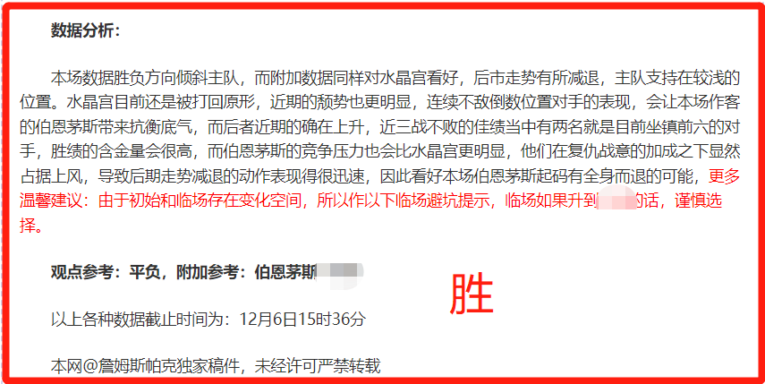 3、观点建议没有局限性,胜负以及进球均以大方向和胜率为主。