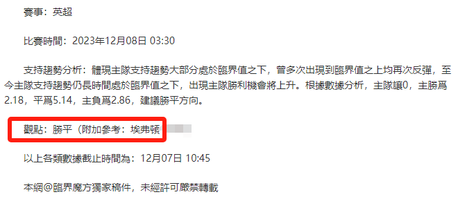 【解鎖內容為以上賽事支持趨勢預測圖展示,以及根據分析預測圖進行相對低機率方向觀點判斷。解鎖內容僅代表個人知識領域觀點,與本網站無關】