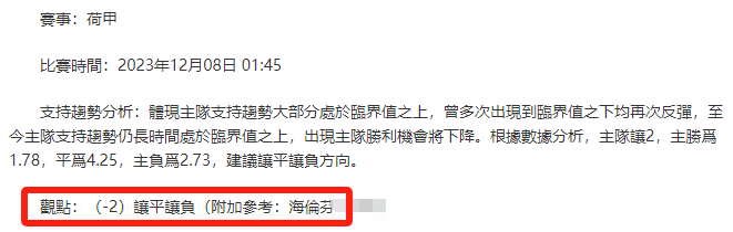 【解鎖內容為以上賽事支持趨勢預測圖展示,以及根據分析預測圖進行相對低機率方向觀點判斷。解鎖內容僅代表個人知識領域觀點,與本網站無關】