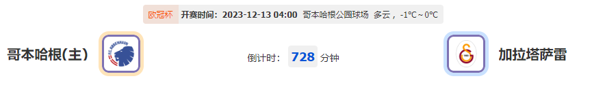 北京时间12月13日04时00分,欧冠杯2023-2024赛季小组赛第6轮比赛,哥本哈根vs加拉塔萨雷,主队现时迎来胜绩士气稍稍得到止住,本次主场迎战同有晋级机会的加拉塔萨雷,能否顺利捍卫主场重新抢分抢胜?让我们拭目以待!