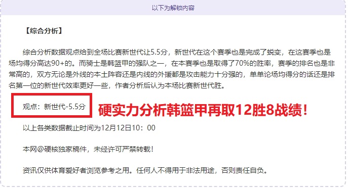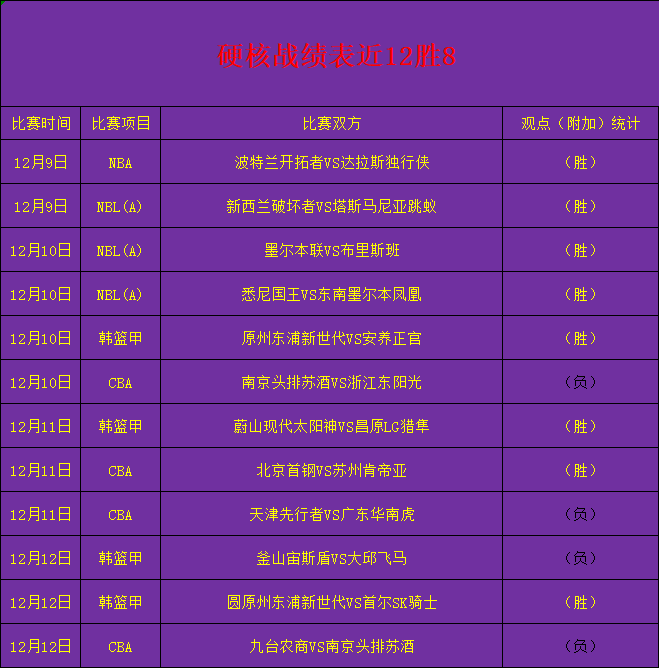 作者近两次十一连胜和一次九连胜彰显了实力,在七月份和八月份也是多次带领众粉丝取得不少连胜的成绩,在篮球分析领域作者也是颇有一番心得受到粉丝支持与信赖,在上期三战赛事取一胜后,近期拿下了12胜8战绩,作者强势回归收复失地继续带领粉丝吃香喝辣,接下了会延续状态,致力打造篮球领域第一人!