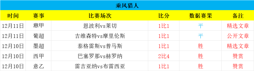 大家好,我是乘风猎人,职业数据分析师,足球经验丰富,研究足球数据数十载,期望能够乘风破浪,精准猎球制胜,欢迎朋友们长期关注!