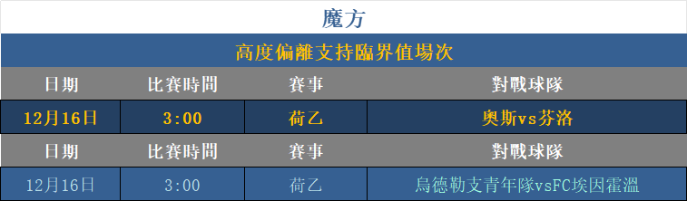 利用「魔方關系」進行支持趨勢預測分析,超越臨界數值之上可視為低機率方向,此方式對比賽方向分析有顯著幫助效果。