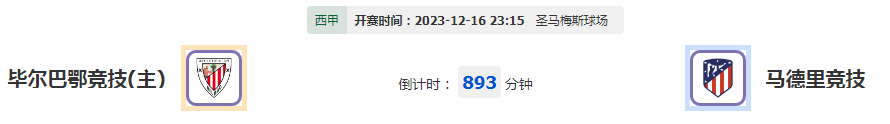 北京时间2023年12月16日23:15,2023-2024 西班牙甲组联赛,毕尔巴鄂竞技vs马德里竞技,此役是西甲赛新赛季第17轮的较量,毕尔巴鄂竞技上轮联赛客场1-1战平格拉纳达,联赛近6轮不败,此役坐镇主场圣马梅斯球场迎战马德里竞技,两队如何对峙?下面由本作者为大家做详细阐述。