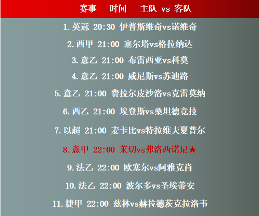 赛事前瞻:本文提供12月16日20时30分-22时00分时段的11场足球赛事走势分析表,当中包括英冠、西甲、意乙、以超等赛事提供分析参考,具备较高的参考价值。主要关注赛程如下: