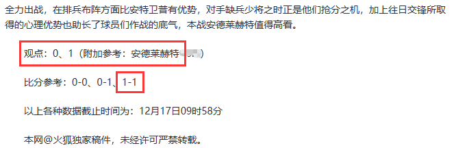 昨天火狐精选送出的比甲赛事,安德莱赫特客场1-1战平安特卫普,观点、附加参考及比分全部顺利打出,精选喜获5连胜,近7零失!今天开启新的一周,愿你我,不慌不忙,从容淡定,心想事成!同时也别忘了继续关注火狐的动态哦!