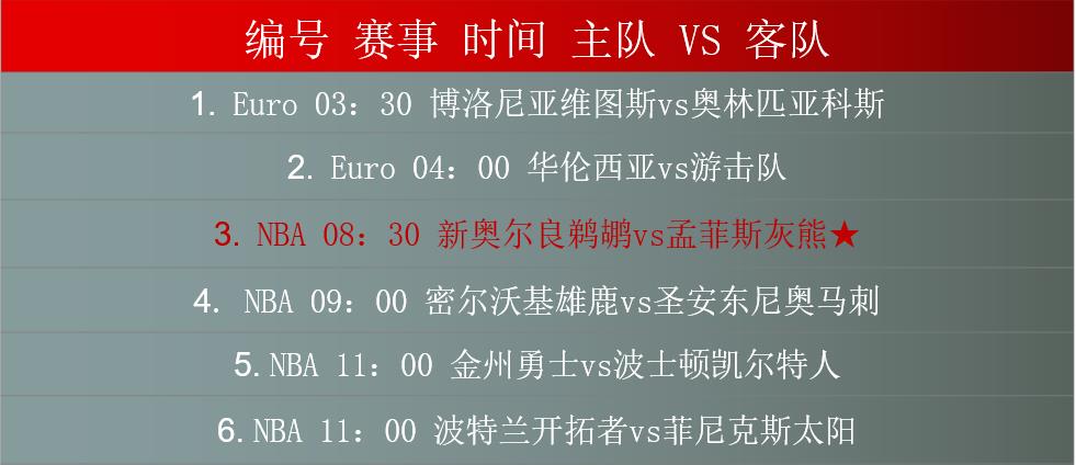 赛事前瞻:(标★赛事表示五星标红为信心赛事)