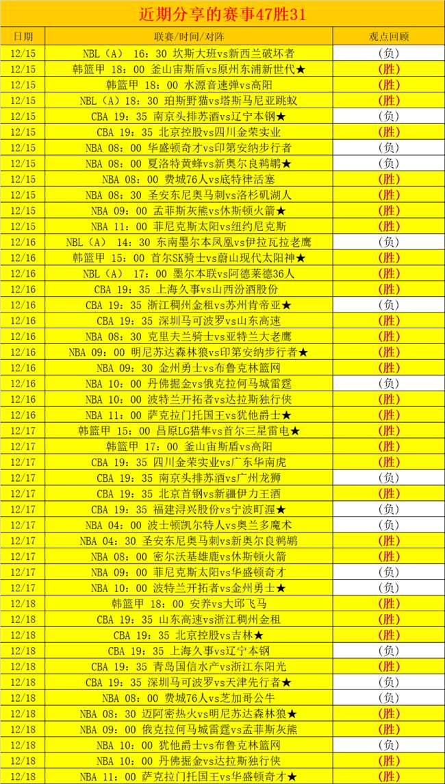 昨日分享的赛事取得了12胜8的成绩,其中NBA赛事取得了6胜4的成绩,近期分享的赛事取得了47胜31的佳绩,另外近期NBA星赛事取得了36胜26的成绩。份量赛事围绕信心继续冲击,持续关注模型分析高质量赛事!五星重点模型不断寻求新突破,新视觉模型稳步向前,用优异成绩报答粉丝们!大型赛事一直是CDA模型强项之一,信心也是十足。