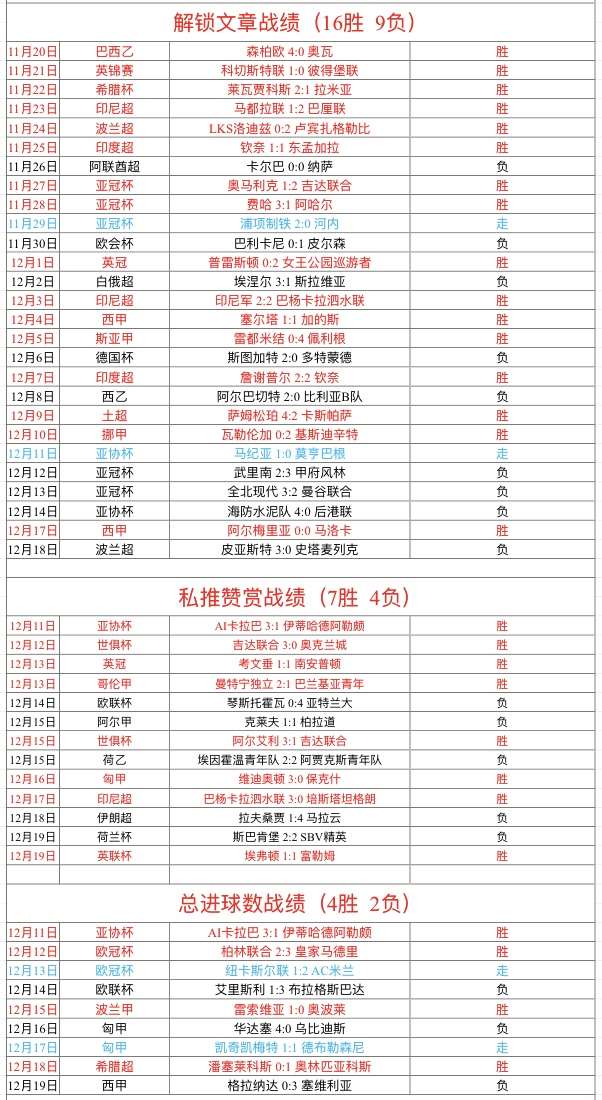 周二公推1场稳稳胜利拿下,公推近44胜30,状态稳定!私推赞赏2场,结果1胜1负,整体状态一般!私推总进球数1场没有打出,判断失误!解锁文章没有发送,解锁文章依然近25胜16!