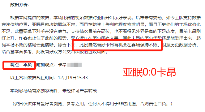 (温馨提示:观点回顾为已完场赛事的统计,并不能代表未来的观点预测结果走势,观点仅为其个人意见,与平.台无关。资讯仅供体育爱好者浏览,并不构成购.彩建议,任何人不得用于非法用途,请广大用户理性消费。)