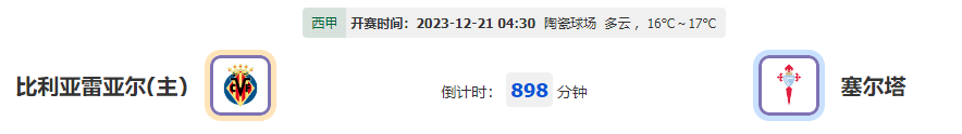 北京时间2023年12月21日04:30 ,此役是比利亚雷亚尔与塞尔塔今年的第三场对决,比利亚雷亚尔遭遇连战不胜的打击,此役能否拿下胜绩捍卫主场?而塞尔塔此前是恢复抢分的状态,此番客访定然不失战意,他们又能否做到去全身而退?