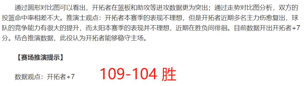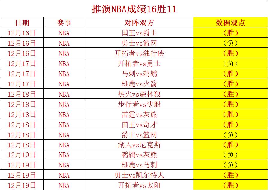 昨日分享的NBA赛事取得了2胜2的成绩,近期分享的NBA赛事取得了16胜11的成绩,本贴为大家分享2场NBA赛事,详情可点击头像添加关注,了解更多信息。推演士将搜集更多的情报让数据模型方向更为精准,保持长期关注才是胜利的关键。