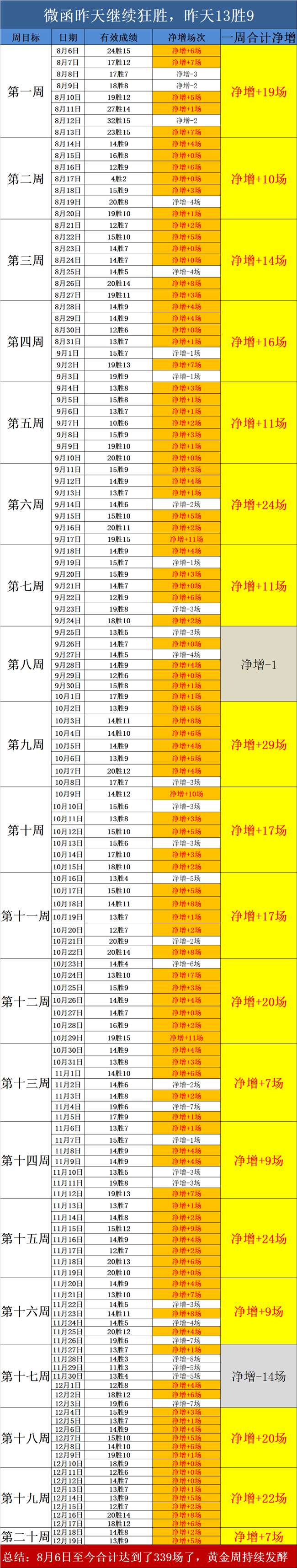 1、昨天再次狂胜,昨天取下13胜9的成绩,昨天净增+5场,本周目前净增+7场,已经连续狂胜了7天,狂胜节奏持续中。