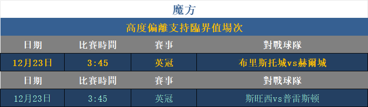 利用「魔方關系」進行支持趨勢預測分析,超越臨界數值之上可視為低機率方向,此方式對比賽方向分析有顯著幫助效果。