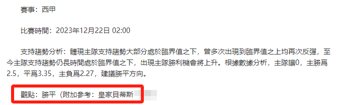 【解鎖內容為以上賽事支持趨勢預測圖展示,以及根據分析預測圖進行相對低機率方向觀點判斷。解鎖內容僅代表個人知識領域觀點,與本網站無關】