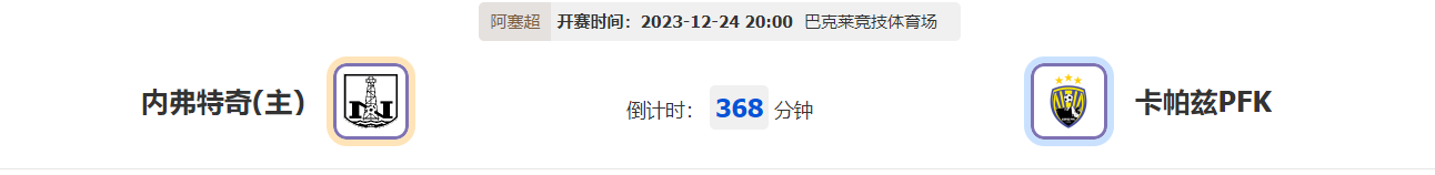 北京时间12月24日20:00,阿塞超第18轮,对阵双方分别是主场的内弗特奇和客场的卡帕兹PFK,内弗特奇现在持续回升,近期的抢胜表现十分不俗,卡帕兹PFK近期还是陷入颓势,而且交手历来处于下风,本场有机会全身而退?