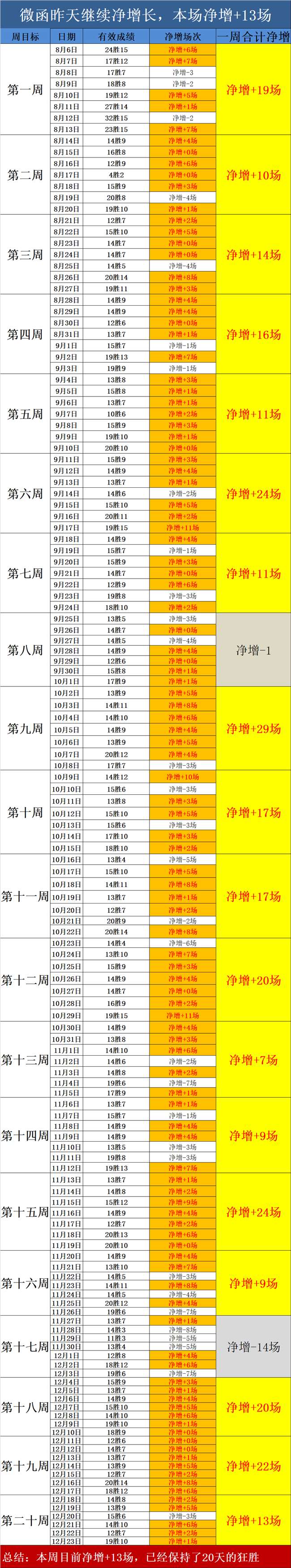 1、昨天继续保持净增长,昨天有10场正确观点打出,1场打平,本周目前净增+13场,近三周净增+55场,狂胜节奏持续。