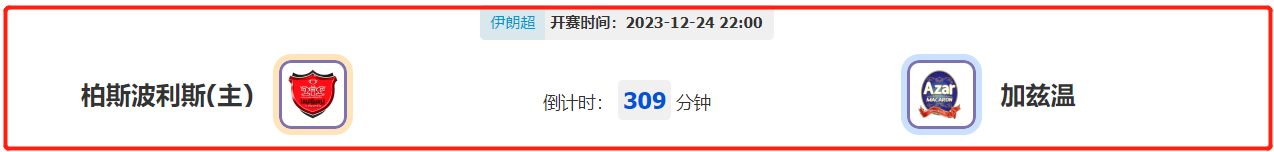北京时间2023年12月24日22时00分,伊朗超联赛第14轮的对决,主场的柏斯波利斯对阵客场的加兹温,柏斯波利斯目前排名联赛第4名,加兹温目前排名联赛第7名,双方排名有差距,这场对局会有怎样的结局呢?
